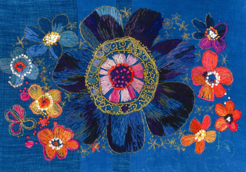 Wichtig: Die fertige Stickerei säumen und auf einer weichen Unterlage auf der Rückseite dämpfen.